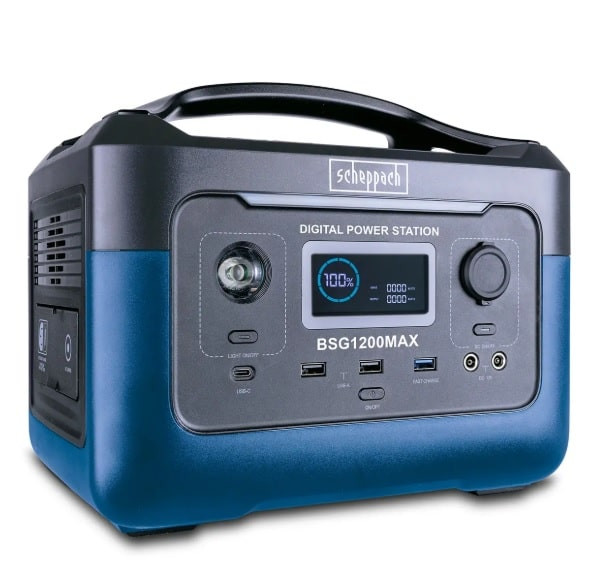 پاور استیشن آلمانی Scheppach مدل BSG1200MAX با ظرفیت فوق العاده 156000 میلی آمپر ساعت یکی از جمع و جور ترین و بالارده ترین پاوربانک های صنعتی موجود در بازار است که برای استفاده خانگی و همچنین کمپ و طبیعت گردی کاملا مناسب است.