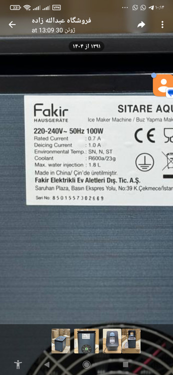 مشخصات دستگاه یخساز فکر FAKIR sitare aqua