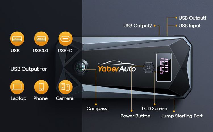 دستگاه جامپ استارت یه دستگاه فوق العاده برای کسانی که طبیعت گردی و کمپ اینارا دوست دارن حتی برای کارگاه سر کار سر زمین کشاورزی هرجا شم فکرشو بکنی کارامد و مفید میباشد این دستگاه ظرفیت عظیم 26800mAذخیره داره یک پاور بانک قوی و در کل یه چراقو قوی هم داره و چکش برقی داره در مواقع اظطراری برای شیشه شکستن عالیه ویه قطب نما هم داره برای پیدا کردن مسیر ازش استفاده میکنن و مهمتر از همه چیز برای روشن شدن ماشین یه استارتر قوی هست مواقعی که باطریت خوابیده این دستگاه فوق العاد و معجزاسا سفارش المان و اکبنده تعداد محدودی هم داریم