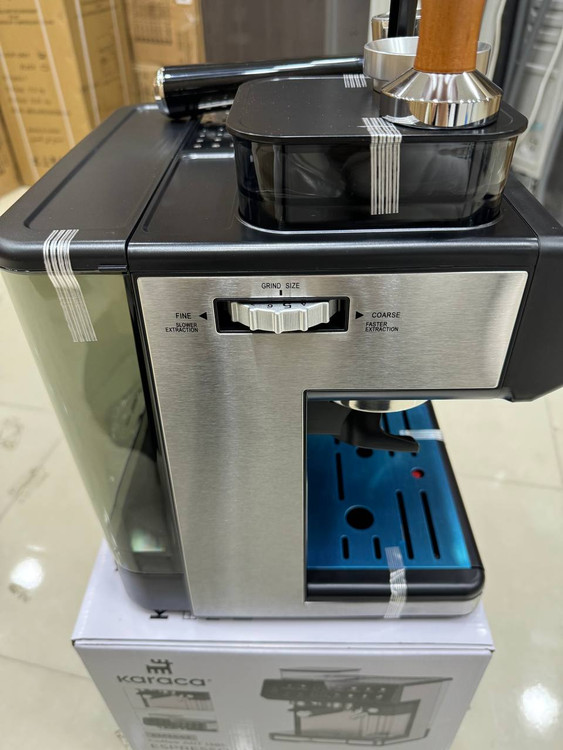 اسپرسو ساز نیمه صنعتی و اسیاب دار و تمام اتومات کاراجا مدل EM3442یکی از با کیفیترین و کاملترین دستکاه اسپرسو سازه که کلی کارای خفن برای علاقه مندان به قهوه و.... و حرفه های مربوط به قهوه میباشد. این دستگاه که برای جا های نیمه صنعتی و خانه طراحی شده به شما این امکان را میدهد که در هر بار قهو درست کردن به شما یک نوشیدنی ایدال بهتون هدیه بدهد. این قهوه ساز عالی در خانه و کافی شاپ ها و جاهای صنعتی میشه ازش استفاده کرد. .این دستگاه باتوجه به امکاناتی که داره از نظر قیمت خیلی مقرون به سرفه میباشد.